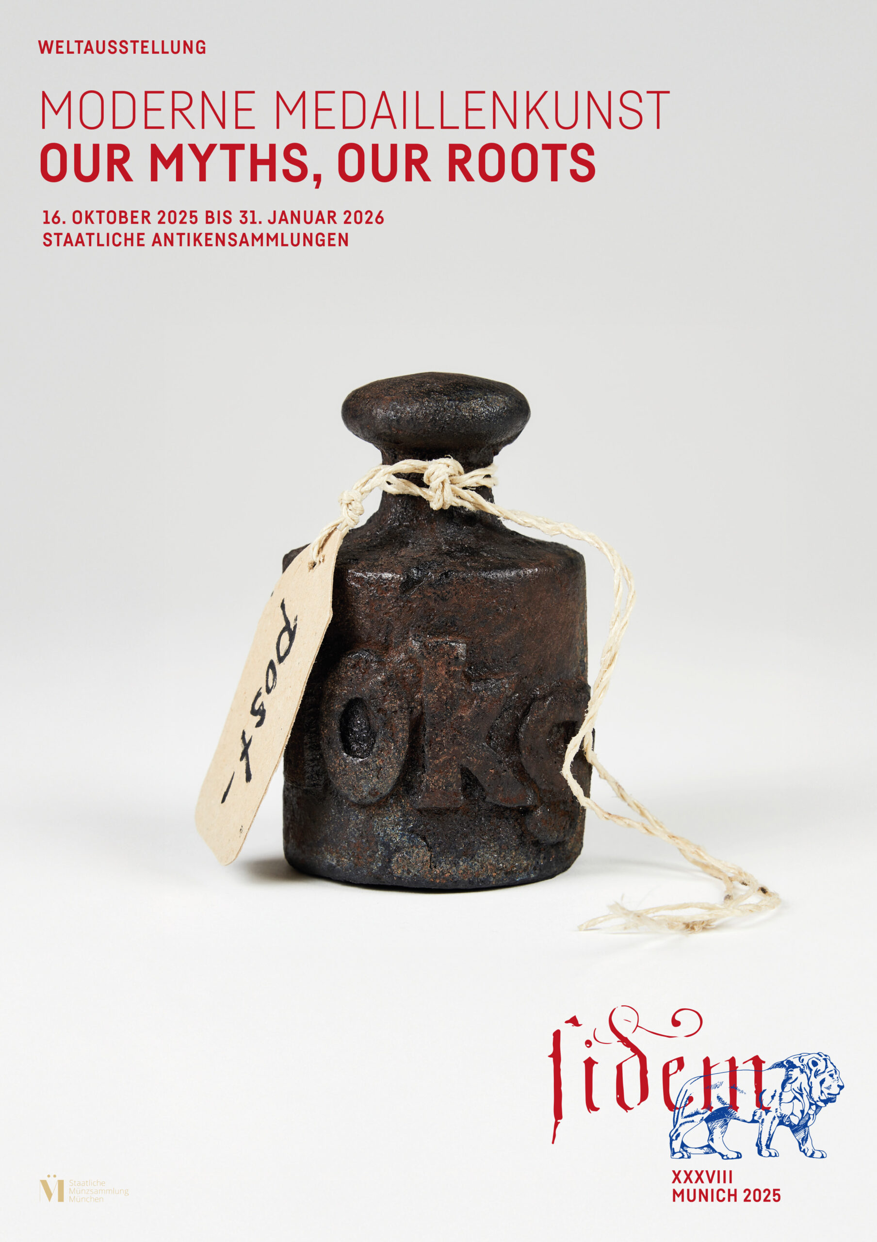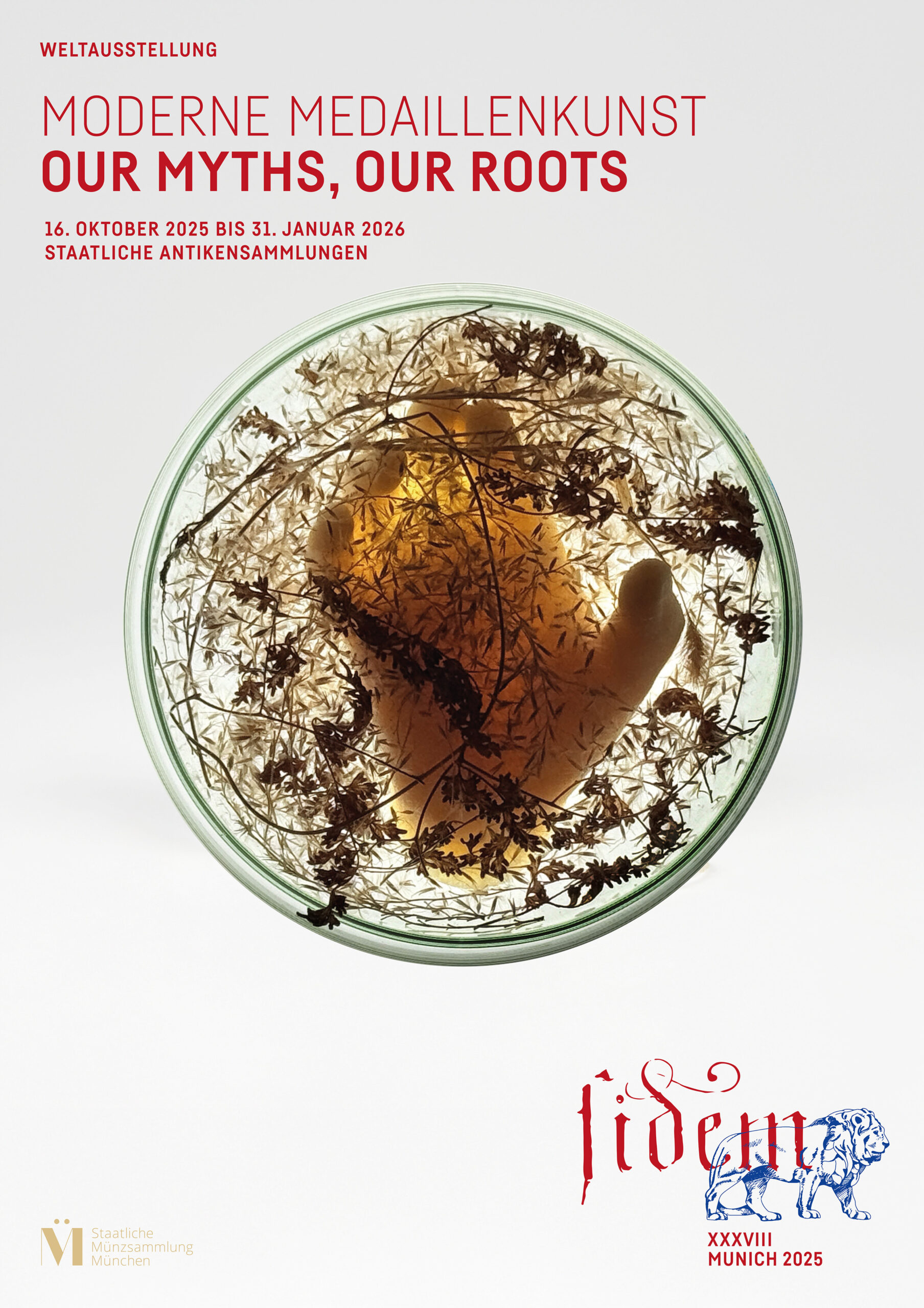 Erstmals findet die Weltausstellung moderner Medaillenkunst in München statt (FIDEM XXXVIII). Gezeigt werden 500 Kunstmedaillen aus über 30 Ländern, die von 350 Künstlern gestaltet wurden und zwischen klassischer Form und moderner Kleinplastik changieren. Die Werke aus Europa, Ozeanien, Asien und Amerika, die in ihren Herkunftsländern bereits prämiert worden sind, treten unter dem Stichwort „Unsere Mythen – Unsere Wurzeln“ – „Our Myths – Our Roots“ in Dialog miteinander. Die Vielfalt der Länder spiegelt sich in den Objekten wider, die unterschiedliche Perspektiven auf aktuelle und zeitlose Themen eröffnen.